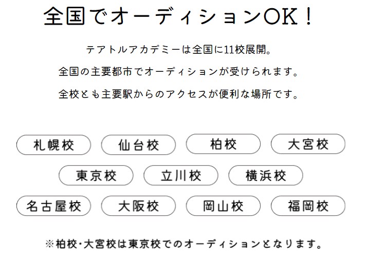全ての日本国内でテアトルアカデミーの子役オーディションは受ける事が可能です。